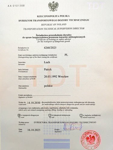Szkolenia indywidualne w zakresie towarów niebezpiecznych- wybrany obszar